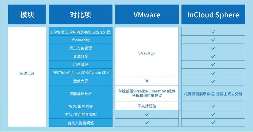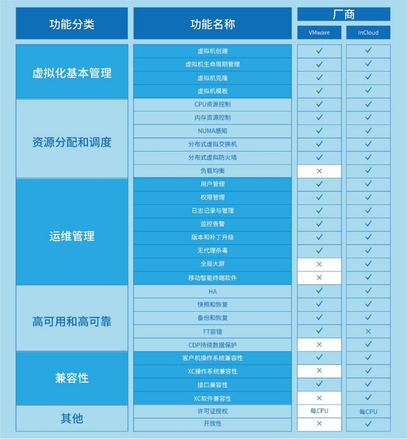 InCloudSphere作为轻量化云计算基础平台,融合虚拟化高级特性与云计算功能,全面对标vSphere(覆盖其90%以上常用功能),可替代VVEP和VVS订阅模式,更在混合负载支持上实现技术突破。