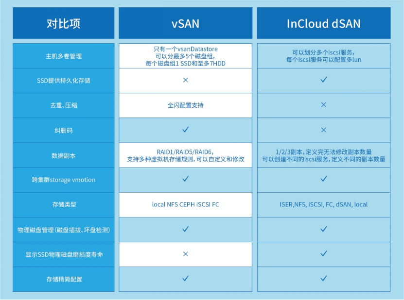 InClouddSAN是 ■澳门十大棋牌排行榜最新■云海自主设计研发的超融合专属高性能分布式存储软件,系统损耗率低,在实现vSAN功能覆盖的基础上,以架构创新解决传统分布式存储的性能瓶颈与扩展限制。
